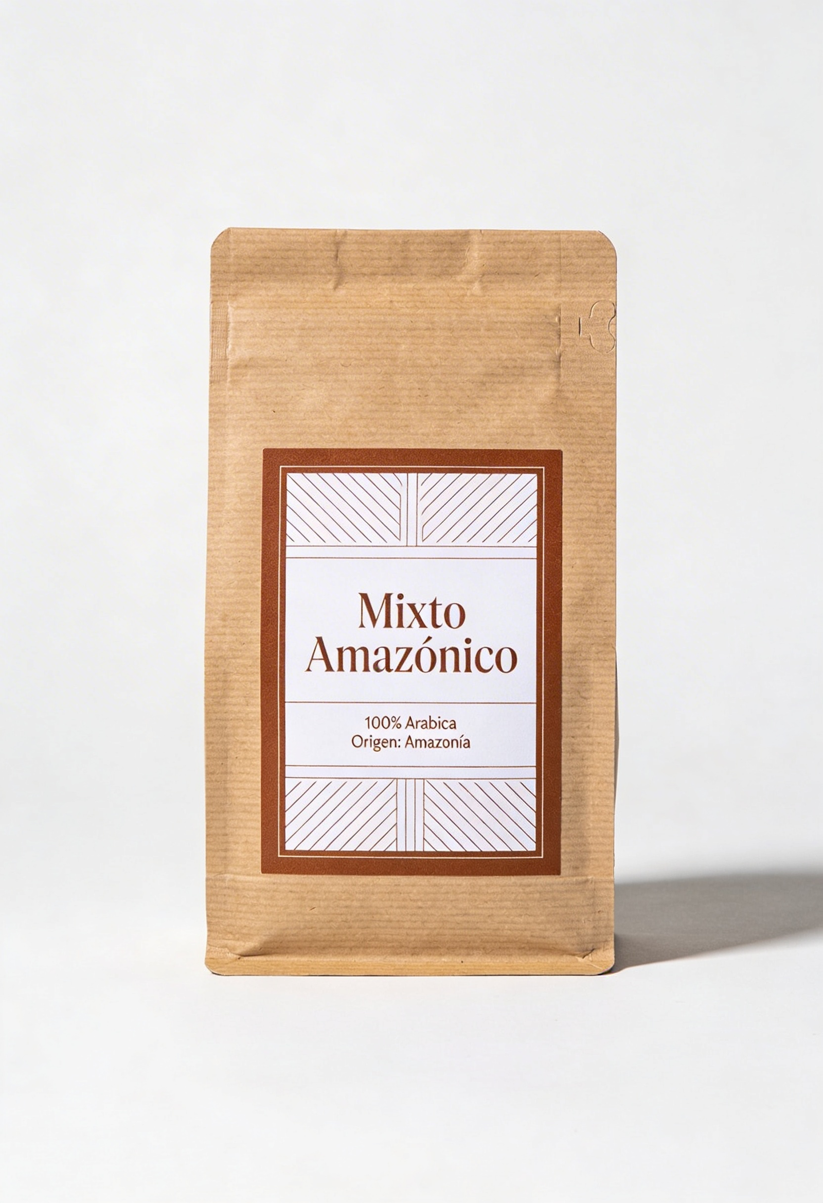 Café mixto amazónico en grano, cuidadosamente seleccionado para conservar su frescura y notas aromáticas únicas. Ideal para moler al instante y disfrutar una taza con carácter, cuerpo y esencia de origen.